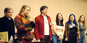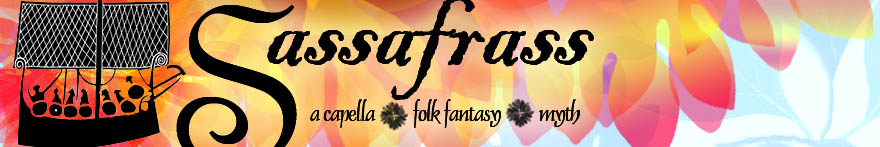 Sassafrass is a singing group performing original a cappella folk music, mostly with fantasy, mythology and science fiction themes. Our pieces are set in close harmony, with a somewhat Renaissance feel, and for women’s voices or mixed. Our songs usually tell stories, and have a lot of lyrical complexity, often with multiple different lines of lyrics woven together to communicate different characters or aspects of a story. We perform mainly at science fiction and fantasy conventions, but also at clubs and other venues.