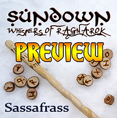 • SundownPreviewCoverThumbSundown: Whispers of Ragnarok – Preview is our way of sharing what we have of the still-in-progress Sundown Norse Myth Song Cycle.  It contains the final recordings of “My Brother, My Enemy” and both versions of “The Futhark Song” (the sweet one and a new eerie modal arrangement), just as they will appear on the final CD.  It also contains recordings of the seven Character Themes which recur throughout the song cycle, letting you spot the influence of each character in the larger pieces.  As a final bonus, it contains a sample of the six-part finale piece “Longer in Stories than Stone” which is still in production, plus it comes with downloadable PDFs including a lyrics sheet for “My Brother, My Enemy,” one for “The Futhark Song” featuring the original runic characters, and the sheet music for the Character Themes.