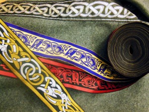 Source for pre-made fabric trims in Celtic, Viking and Renaissance designs.  Machine made, and many a little too complex to be period plausible, but beautiful. Supplied the trims on most of our costumes.